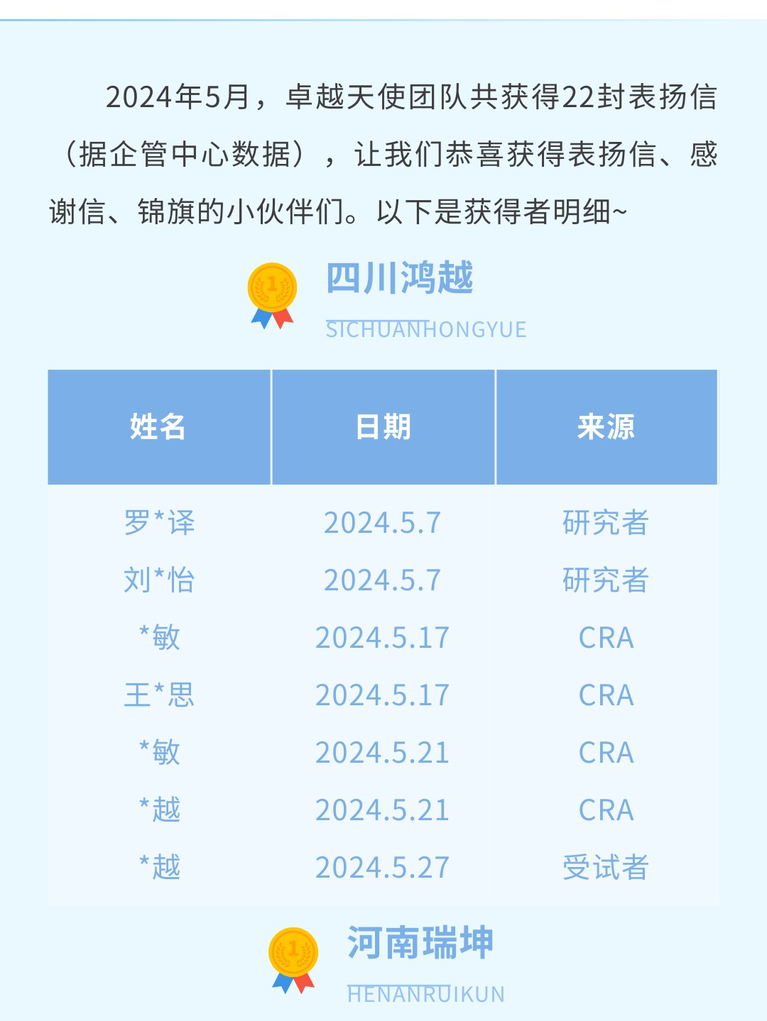 5月表扬信