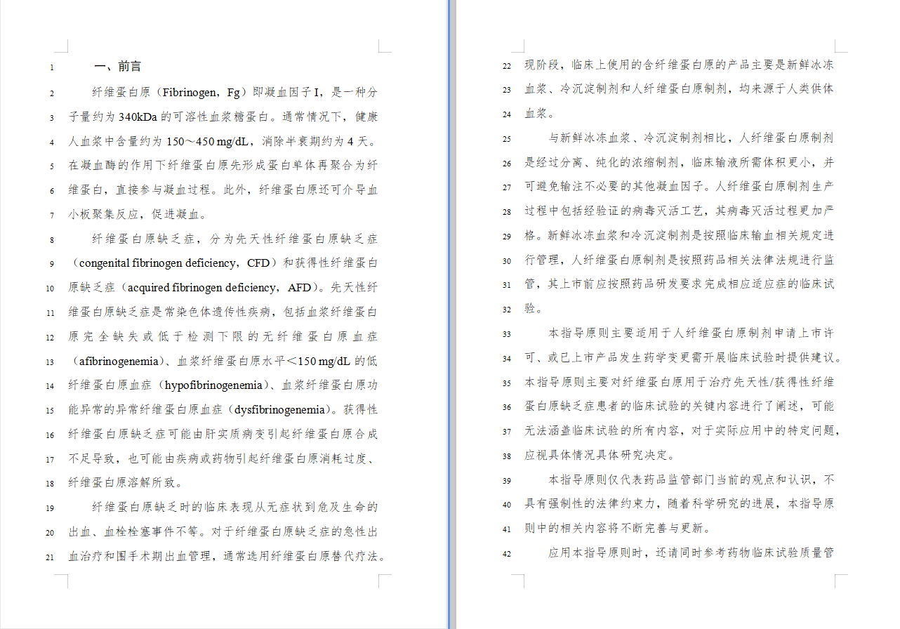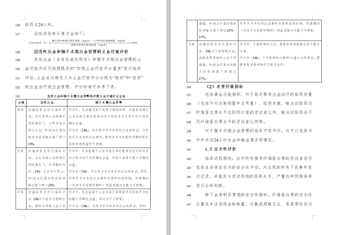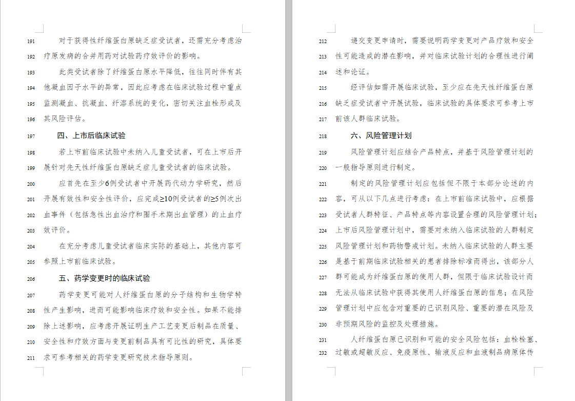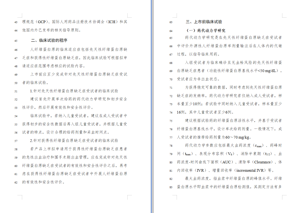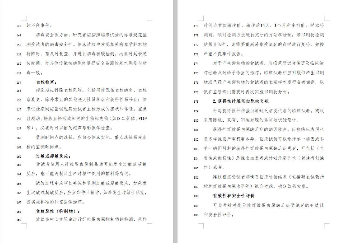 为更科学的指导和规范人纤维蛋白原的临床试验,药审中心于2022年发布了《人纤维蛋白原临床试验技术指导原则(试行)》。结合近一年的实施情况修订了《人纤维蛋白原临床试验技术指导原则(修订版征求意见稿)》,以期为药品研发注册申请人及开展药物临床试验的研究者提供建议和指南。